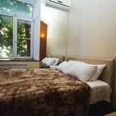 В просторных номерах с изысканным дизайном можно хорошо отдохнуть. Здесь для Вас удобные двуспальные или круглые кровати, большие зеркала и телевизор. Собственные ванные комнаты оснащены душевыми кабинами. На территории всего отеля предоставляется доступ в Wi-Fi соединению.