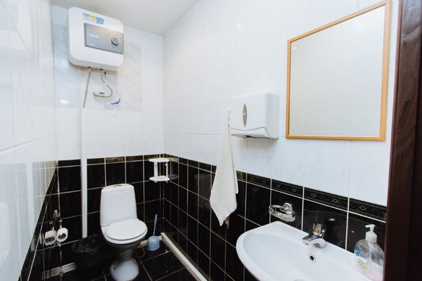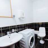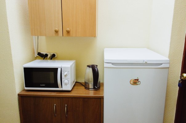 Общая кухня, которая обустроена в гостинице, оборудована необходимыми принадлежностями, инвентарем и техникой. Здесь гости сами смогут приготовить все, что им необходимо. Из техники - чайник, холодильник, микроволновая печь. В кухне также расположена небольшая уютная обеденная зона.