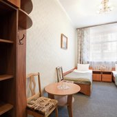 Номера отеля «Пахра» обставлены деревянной мебелью и оформлены в классическом стиле с использованием спокойных тонов и мягкого освещения. В числе удобств телевизор, холодильник и собственная ванная комната в каждом номере.