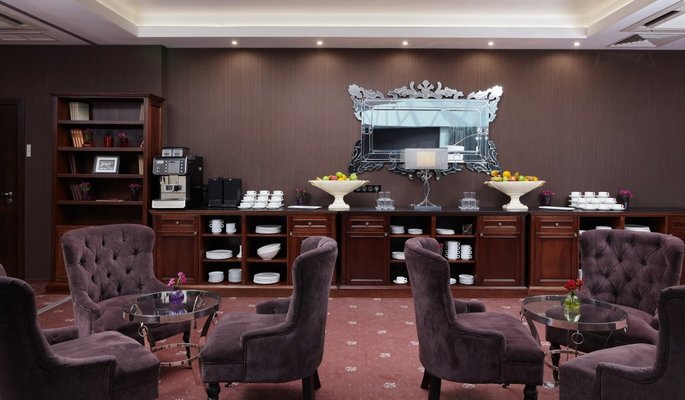 В течение всего дня в ресторане подают фирменные блюда региональной русской и европейской кухни. Вечером гости могут посетить стильный бар отеля, где представлен широкий выбор напитков.