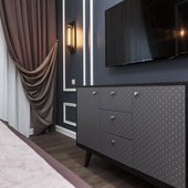 Для размещения гостей подготовлены стильные и комфортабельные номера, каждый из которых обставлен качественной деревянной мебелью. Категории оснащены набором посуды, системой кондиционирования. Собственная ванная комната включает в себя гигиенические принадлежности.