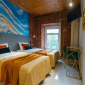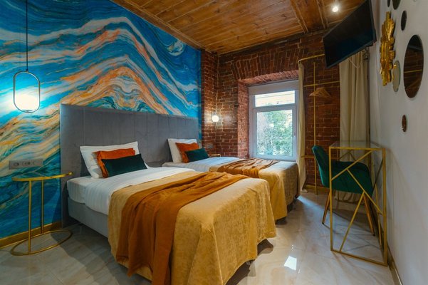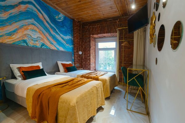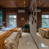 К размещению гостей представлены роскошные номера в классическом стиле. Они оборудованы качественной мебелью и современной техникой. В номере расположена спальня, ванная комната оснащена стандартным набором сантехники с туалетно-косметическими принадлежностями. Из окон открывается живописный вид на город.