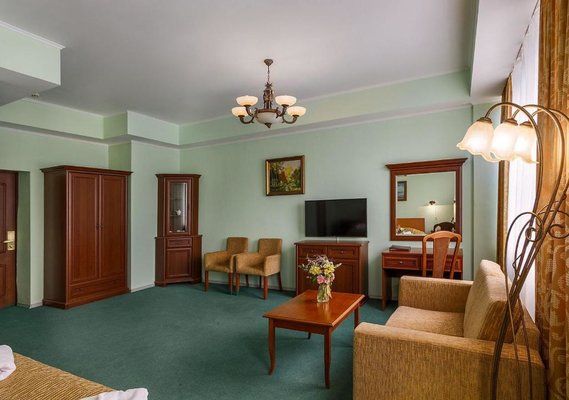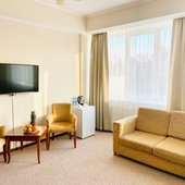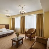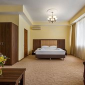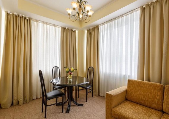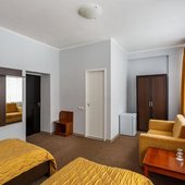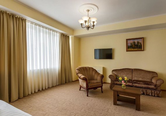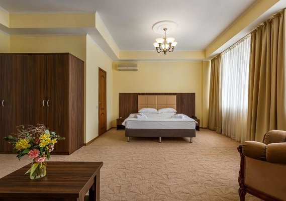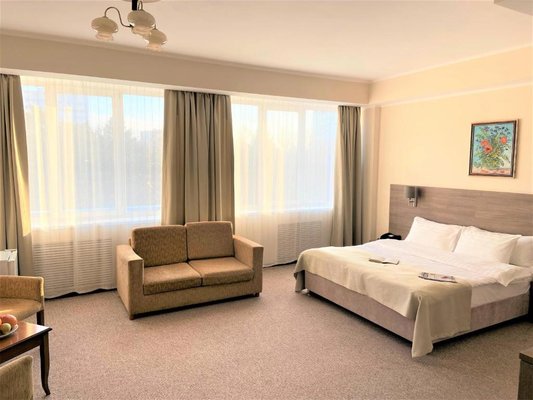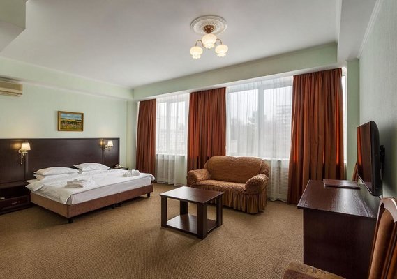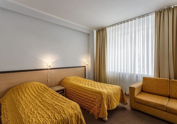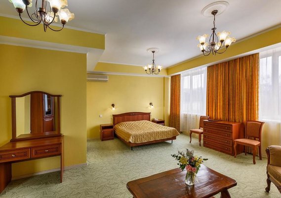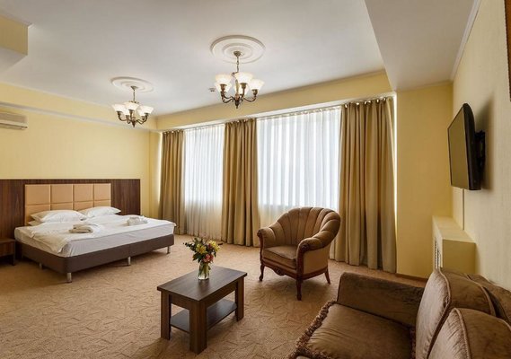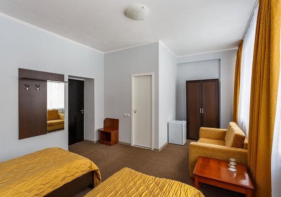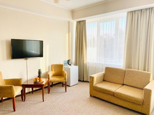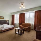 Номерной фонд состоит из 1-местных, 2-местных номеров со всеми удобствами, а также номера категории люкс. Из дополнительных услуг в гостинице имеется сауна, бассейн, бар, салон красоты, солярий, тренажерный зал, настольный теннис, дискотека, бильярд.