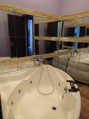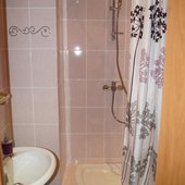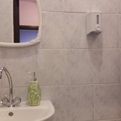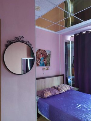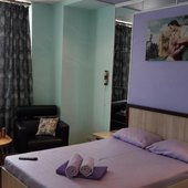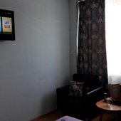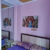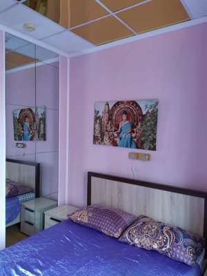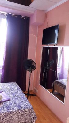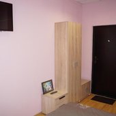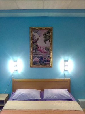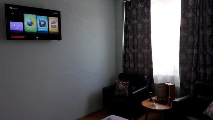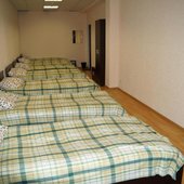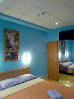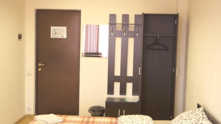 Гости могут выбрать кровать в общем номере или семейные апартаменты с двуспальной кроватью. Есть шкаф, тумба, ТВ. Хорошо работает Wi-Fi. Сантехника в отличном состоянии, есть душевая кабина.