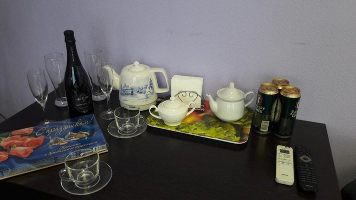 Постояльцы могут воспользоваться общей кухней. В ней есть мойка, микроволновая печь, место для готовки, два электрических чайника. Гостей угощают пакетированным чаем. Рядом работают продуктовые магазины, кафе, столовые.