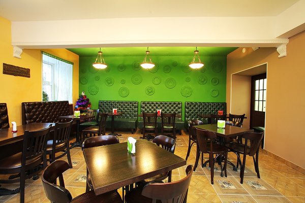 При отеле работает ресторан и небольшой бар, где можно заказать различные блюда и напитки по меню. Также осуществляется доставка блюд в номер. На территории гостиницы есть буфет, который подходит для детей. В ресторане можно не только покушать, но приятно провести время. Рядом можно посетить кафе-бар «Домино», ресторан «Седьмое небо», супермаркет «Магнолия».