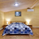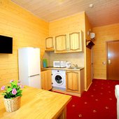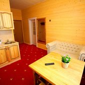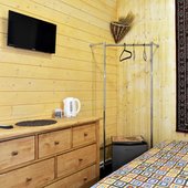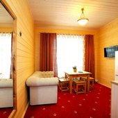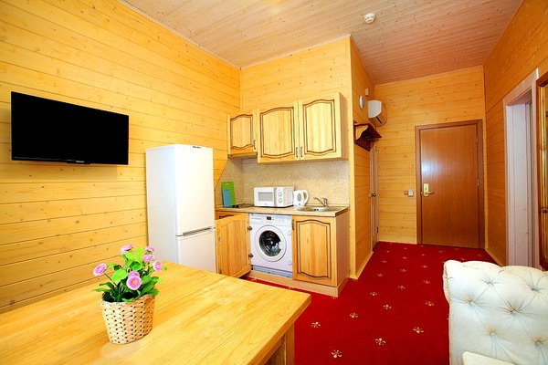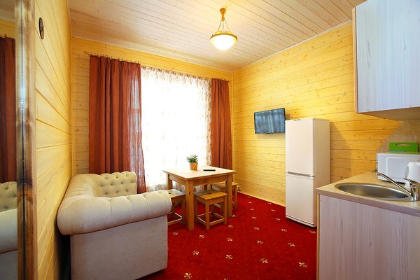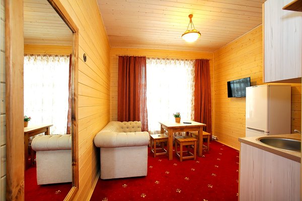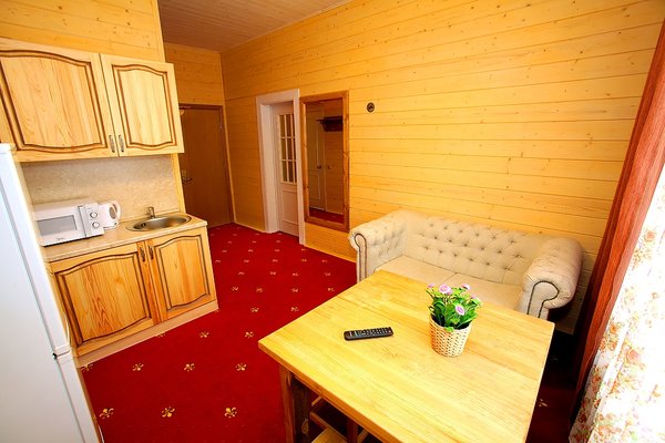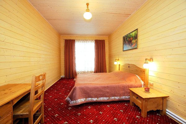 В комфортабельному размещению представлены категории «стандарт», «семейный», «люкс» и «апартаменты». Звукоизолированные номера укомплектованы жк-телевизором, холодильником, удобной кроватью, вместительным шкафом. В ванной комнате, в которой на выбор имеется ванна или душ, оснащена тапочками, набором полотенец и средствами личной гигиены. Для того, чтобы оставаться с родными и близкими всегда на связи, на территории работает бесплатный Wi-Fi. Для гостей представлены категории как в главном корпусе, так и в чистом деревянном корпусе.
