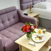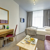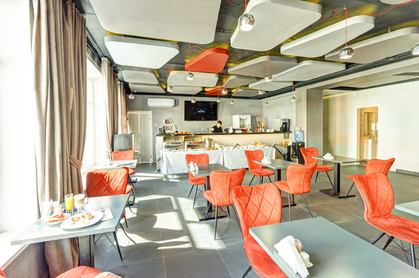 Завтраки, обеды и ужины предоставляются в кафе на первом этаже гостиницы в формате "шведского стола". Неподалеку расположены продуктовые магазины.