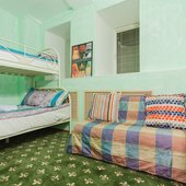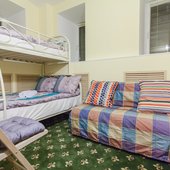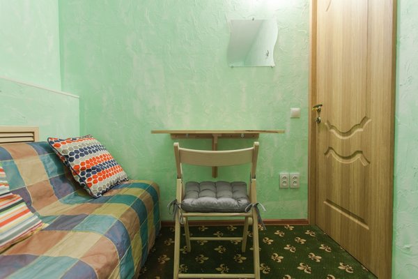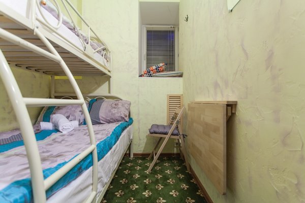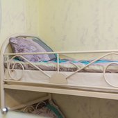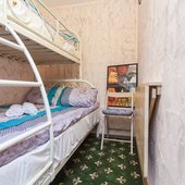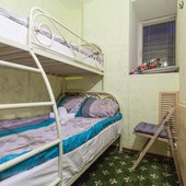 Номера представлены категориями "Стандарт", "Бюджет" и "Улучшенный". Интерьер выполнен в светлых тонах. В комнатах имеются двухъярусные кровати.
