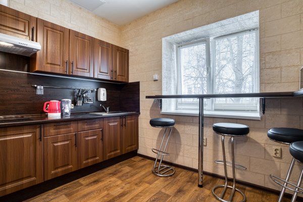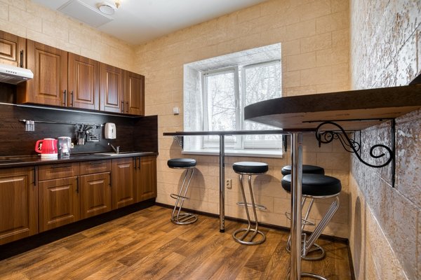 В распоряжении отдыхающих просторная кухня, она включает в себя: электрический чайник, холодильник, плиту и кухонные принадлежности. Наличие современной бытовой техники подарит Вам возможность, прямо здесь, воплощать в жизнь свои кулинарные фантазии. Рядом множество ресторанов и кафе с большим ассортиментом блюд. В любом из них Вы можете скоротать вечер за бокалом любимого напитка.