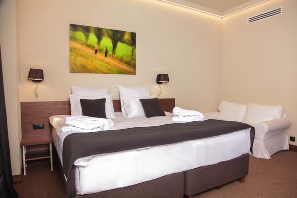 Вас ждут уютные однокомнатные номера, рассчитанные на одного или двух гостей. Каждый номер оборудован собственным санузлом с душем, кондиционером, плазменным телевизором и всей необходимой бытовой техникой, включая Wi-Fi.