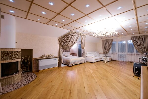 - баня «Баба Яга»: вместимость 15–20 человек, парные и аква–зона, стоимость — 15 000 ₽/час, 90 000 ₽/сутки;
