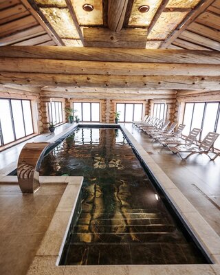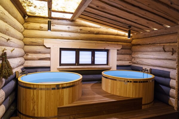 - баня охотника: вместимость 10 человек, парные и аква–зона, стоимость — 15 000 ₽/час, 90 000 ₽/сутки;