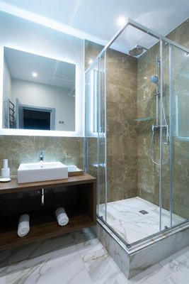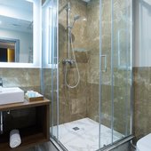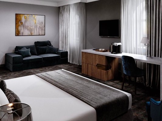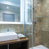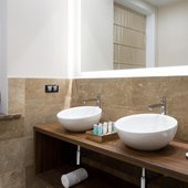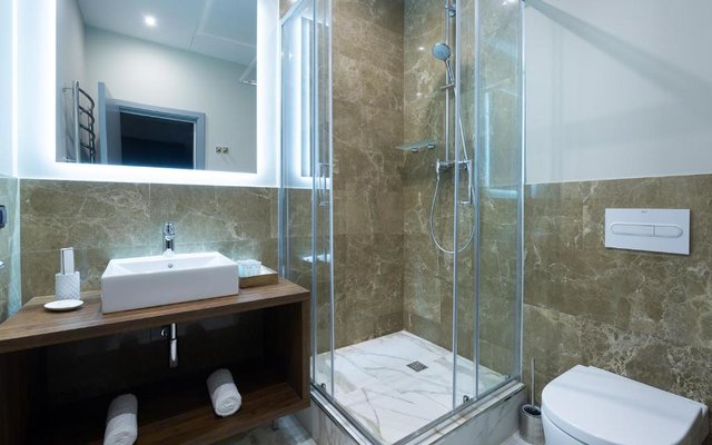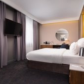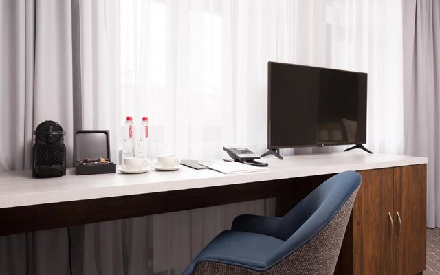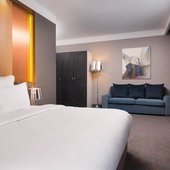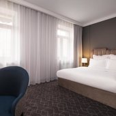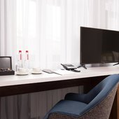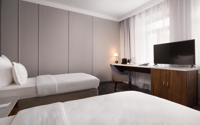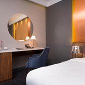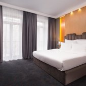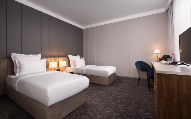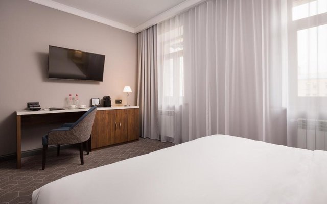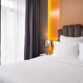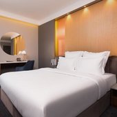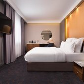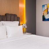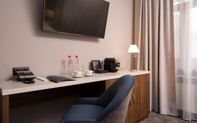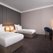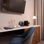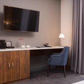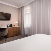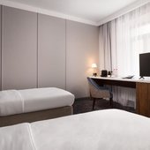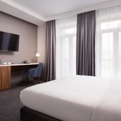 Для оформления номеров выбрана современная цветовая гамма и технологичные материалы. Допускается размещение на одной двуспальной или двух односпальных кроватях. Индивидуальная ванная комната располагает феном и одноразовой парфюмерией премиум-класса.