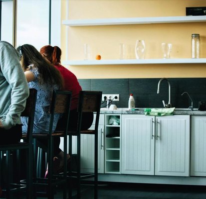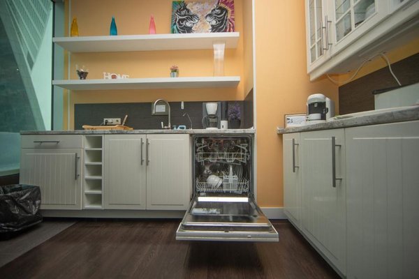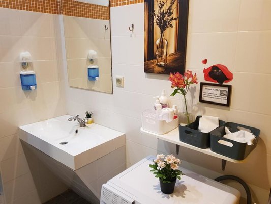На территории хостела гости могут воспользоваться общей кухне, там есть вся необходимая посуда и бытовая техника. Так же в свободном доступе стиральная машина, утюг и фен.