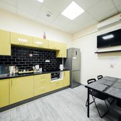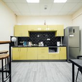 В хостеле имеется общая кухня, где отдыхающие могут в любое время подогреть себе еду с помощью микроволновой печи. В общем пользовании электрический чайник, холодильник, мультиварка, бесплатный чай и набор посуды. В распоряжении постояльцев предоставляется стиральная машинка, гладильные принадлежности. В здании хостела находится кафе "885", где подаются разнообразные блюда со скидками для гостей хостела.