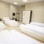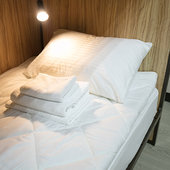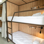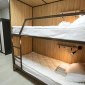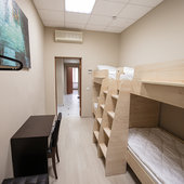 К размещению представлены общие комнаты с односпальными одноярусными и односпальными двухъярусными кроватями. Гости могут воспользоваться ванными комнатами с душевыми кабинами. Интерьер номерного фонда выполнен в светлых тонах. В номерах гипоаллергенное белье из 100% хлопка и гипоаллергенные подушки из лебяжьего пуха.
