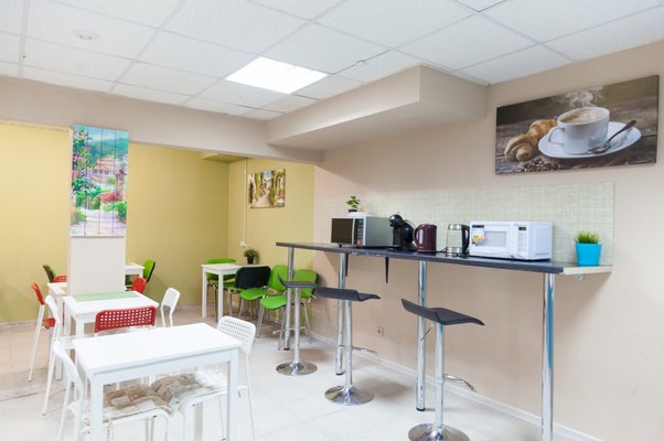 Тот, кто предпочитает собственную пищу, может воспользоваться большой общей кухней, на которой можно найти все необходимые приспособления. Кроме того, поблизости расположен большой выбор кафе, ресторанов, магазинов.