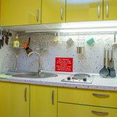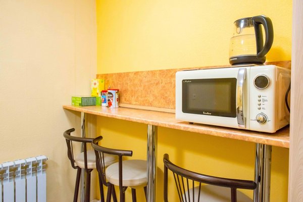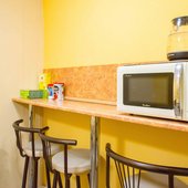На общей кухне, оборудованной бытовой техникой, посудой и обеденной зоной, гости готовят самостоятельно. В шаговой доступности есть продуктовый магазин и заведения общественного питания в которых представлен широкий ассортимент блюд.