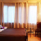 Дизайн интерьера выполнен в едином классическом стиле и спокойной цветовой гамме. К размещению предоставляются номера, где есть вся необходимая мебель и техника для отдыха. В распоряжении постояльцев будет: лаундж, стол со стульями, запирающиеся шкафчики.