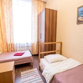 Постояльцам предоставляются места в просторных, современно-оформленных комнатах с удобными кроватями, запирающимися шкафчиками. Дополнительно имеются фирменные тапочки, фен и утюг.