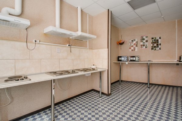 Приготовить любимые блюда можно на общей оборудованной кухне. Также, для удобства жильцов, в номерах установлены отдельные холодильники.