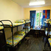 К услугам гостей общие восьмиместные номера с удобными двухъярустными кроватями. Помещения оборудованы всем необходимым для комфортного проживания.