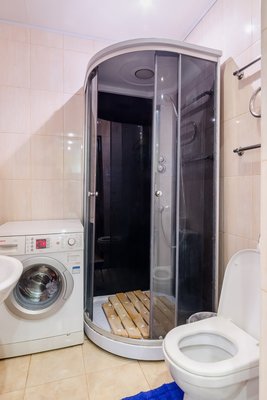 Светлая, чистая и просторная общая кухня совмещена с зоной отдыха. Здесь можно приготовить пишу, используя необходимую технику, и насладиться ей, присев на диван и включив любимый фильм.