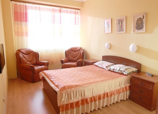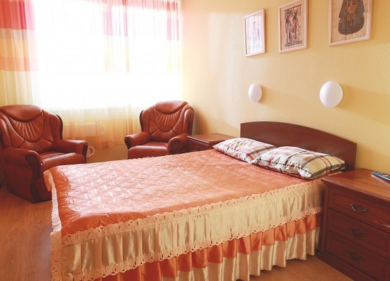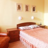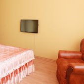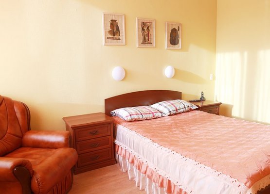 Номера оформлены в классическом стиле и оборудованы деревянными кроватями, телевизором, музыкальным центром и шкафом для одежды. Ванные комнаты оснащены всем необходимым.