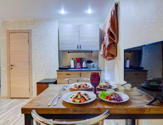 В 15 минутах пешей прогулки от мини-отеля есть ряд кафе, ресторанов и баров, где представлен широкий ассортимент блюд как русской, так и интернациональной кухни.