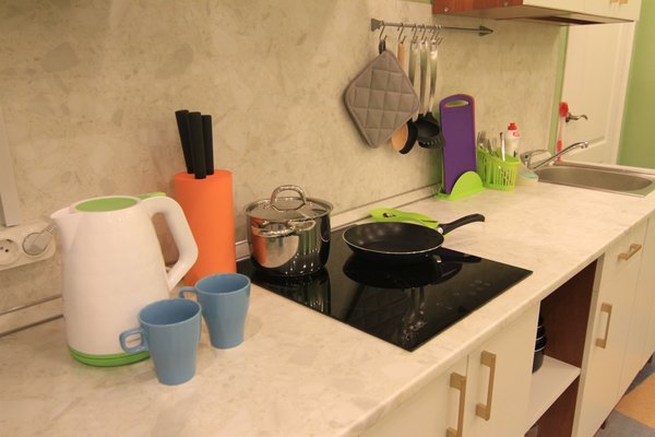 На общей оборудованной кухне, готовить можно самостоятельно, с помощью современной техники и необходимой посуды. В пешей доступности имеется несколько кафе и ресторанов, где подаются блюда разнообразной кухни.