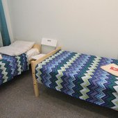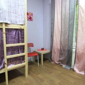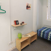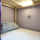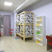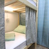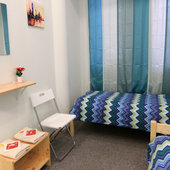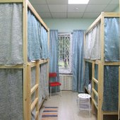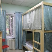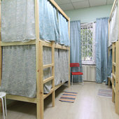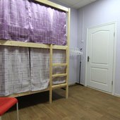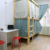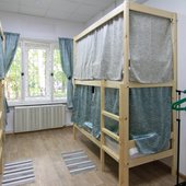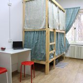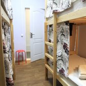 В распоряжении постояльцев индивидуальные двухместные номера, а также четырех-, шести- и восьмиместные комнаты. Каждое койко-место оборудовано индивидуальным освещение, розетками и шторками. Интерьер выполнен в классических светлых тонах. Проживающие пользуются общими душевыми и туалетом.
