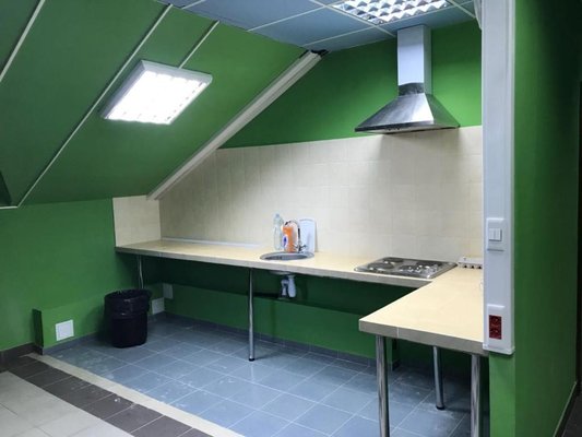 На общей кухне можно приготовить блюда. Для этого есть минимальный набор посуды, электрическая плита и вытяжка. Поблизости есть супермаркет, где удобно приобрести продукты.