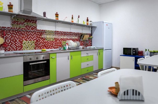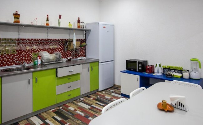 Здесь можно самостоятельно приготовить или разогреть еду на общей, оборудованной всем необходимым кухне.