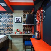 Размещение предоставляется в двухместных номерах, каждая комната выполнена в индивидуальном стиле. В них есть все необходимое, чтобы жильцы чувствовали себя максимально комфортно. В ванной установлен стандартный набор сантехники.