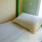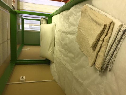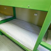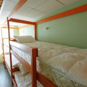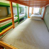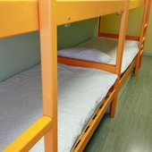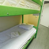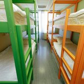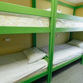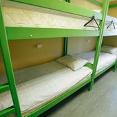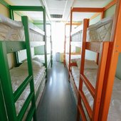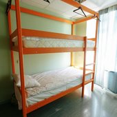 В номерах хостела не очень много места, но оно функционально заполнено двухъярусными кроватями в общих комнатах и двухспальными - в отдельных вариантах размещения. Везде сделан современный ремонт, в оформлении использована яркая цветовая палитра. Ванная комната для всех постояльцев находится на этаже.