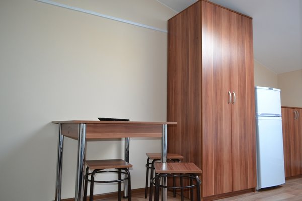 Питание организовано на общей кухне, а в апартаментах есть холодильник, обеденный стол и стулья. Также можно перекусить в ближайшем кафе или попробовать блюда из широкого ассортимента местного ресторана-пиццерии. Имеется услуга доставки еды.