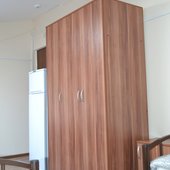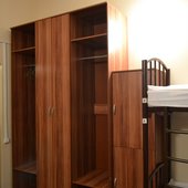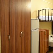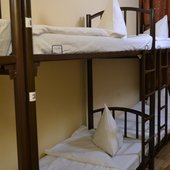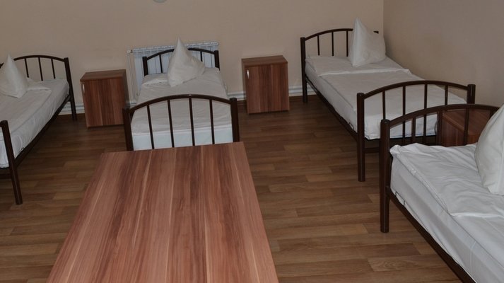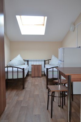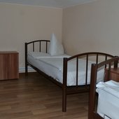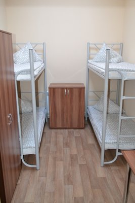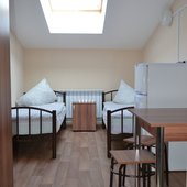Размещение предлагается от двух до десяти человек в просторных номерах с односпальными и двухъярусными кроватями. В каждом имеется прикроватная тумба, гардеробный шкаф и плазменный телевизор. Удобства располагаются на этаже.