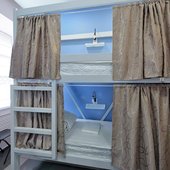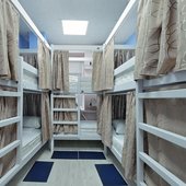 Номерной фонд представлен многоместными комнатами, в которых можно поселиться на отдельном койко-месте. Также есть семейные номера, рассчитанные на троих человек. В каждом апартаменте с хорошей звукоизоляцией установлена эргономичная мебель, столик и кондиционер. У каждой кровати есть полочка, индивидуальная розетка со светильником и шторка. В общей доступности чистые санузлы. Окна выходят на город.