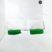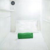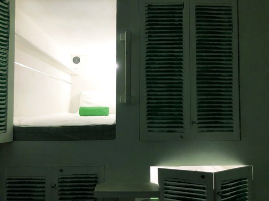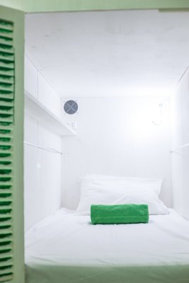 Расположиться гости могут в одноместной или двухместной капсуле или же на койко-месте в общем номере. Удобства расположены на этаже.