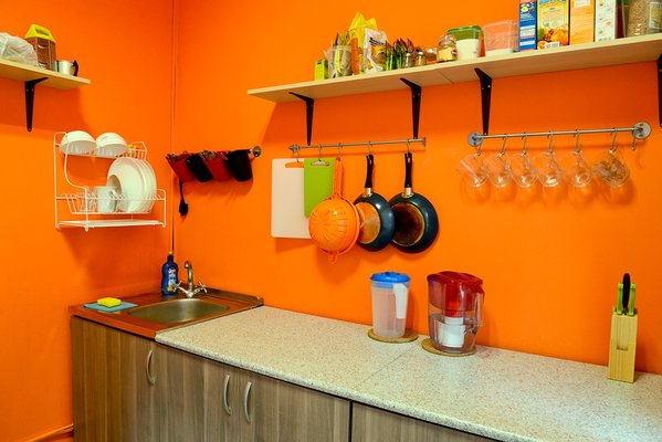 На территории оборудована общая кухня, где Вы сможете приготовить любимые блюда почти как дома. Также здесь можно приятно провести время за чашечкой кофе или чая в общении с постояльцами.