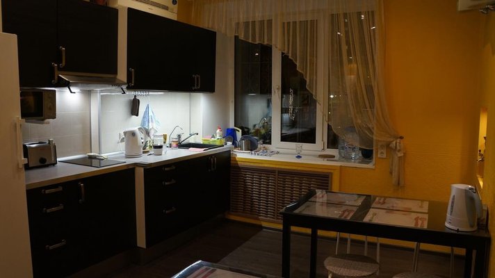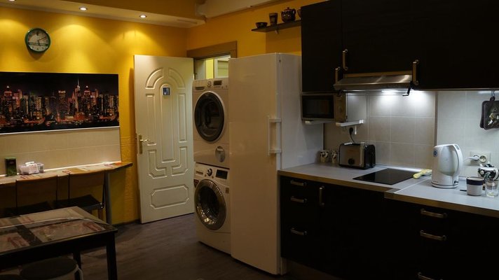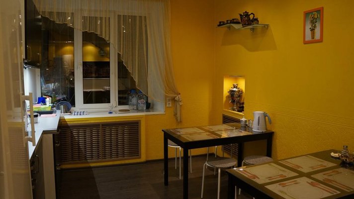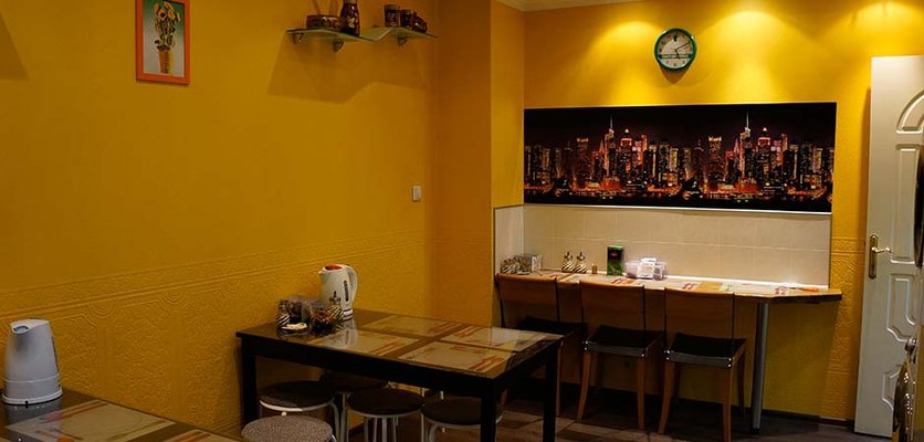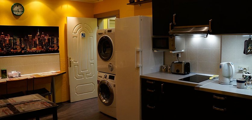 Одним из плюсов хостела является большая кухня для самостоятельного приготовления пищи. Здесь есть не только необходимая посуда, но также бытовая техника, которая может понадобиться для подогрева или приготовления блюд.