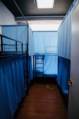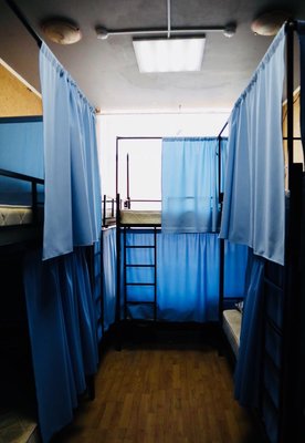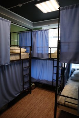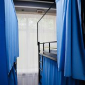 Общие номера располагают двухъярусными кроватями с ярким дизайном. Во всех комнатах имеется вешалка для одежды. У каждой кровати есть индивидуальная шторка, которая позволит вам закрыться. Все проживающие пользуются общими ванными комнатами с душем и туалетом. В стоимость проживания входит постельное белье.