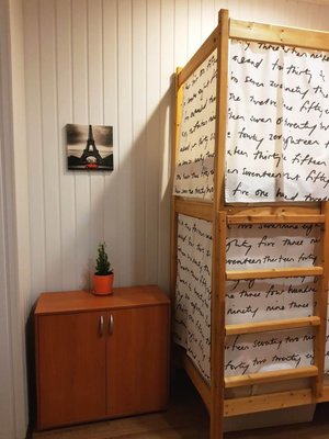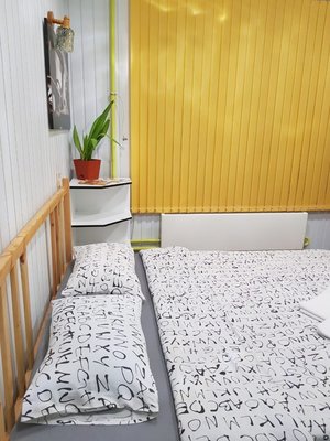 Пять номеров, выполненных в ярких цветах предоставлены для проживания. В каждом установлены кровати с ортопедическими матрасами для комфортного сна и отдыха. Для ценных вещей предусмотрены запирающиеся шкафчики.