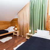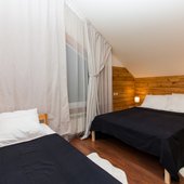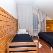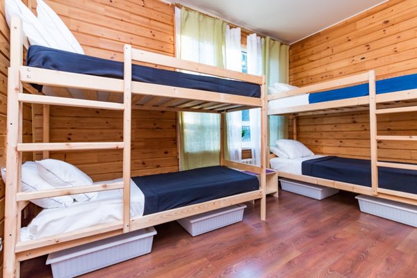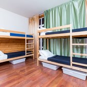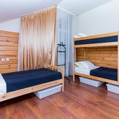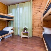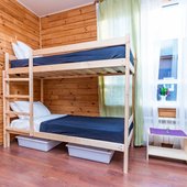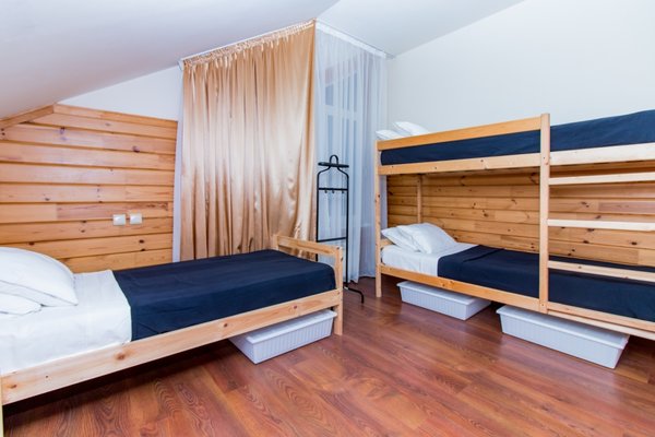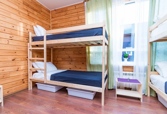 Номерной фонд хостела составляют многоместные номера, которые оформлены в едином стиле и темно-синих оттенках. Мебель новая и функциональная. Есть комнаты с индивидуальными удобствами, а есть с ванной на этаже.