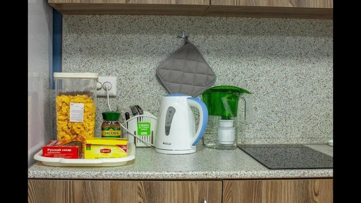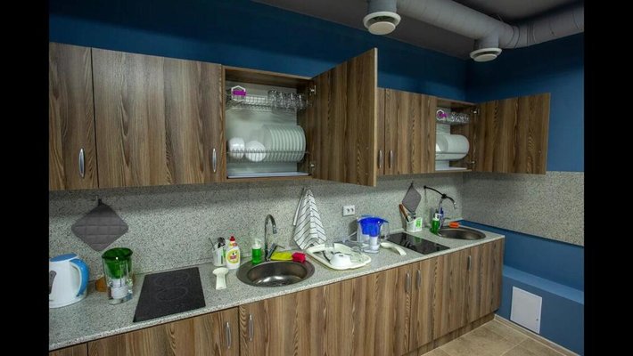 Каждое утро сервируют завтраки, которые зарядят бодростью на весь оставшийся день. Также для питания предоставляется кухня, где можно воспользоваться бытовой утварью и посудой и приготовить себе полноценный обед или ужин. Путь до продуктового магазина или столовой не займет более пяти минут.