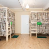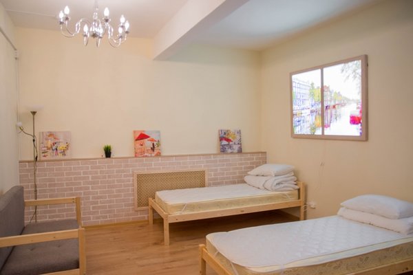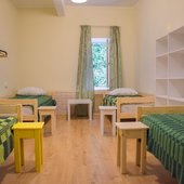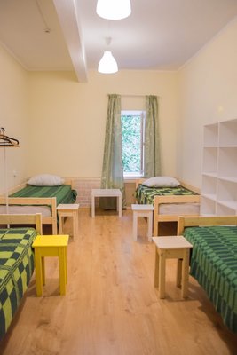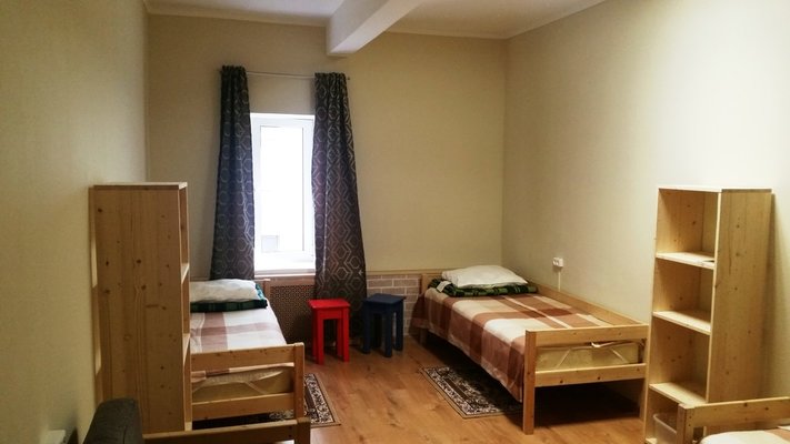 Номера оформлены в ярких тонах, в каждом установлены кровати с ортопедическим матрасом для комфортного проживания. Также имеются индивидуальные розетки и светильники.