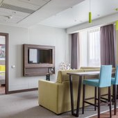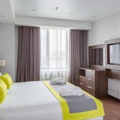 В номерном фонде гостиницы более 250 номерами различных категорий. В комнатах преобладают серые тона, но есть и цветные акценты, которые не дают грустить. Обстановка располагает к приятному отдыху, ведь здесь есть удобная мебель и необходимая техника. В каждом номере предусмотрена собственная ванная комната с душевой кабиной и новой сантехникой.