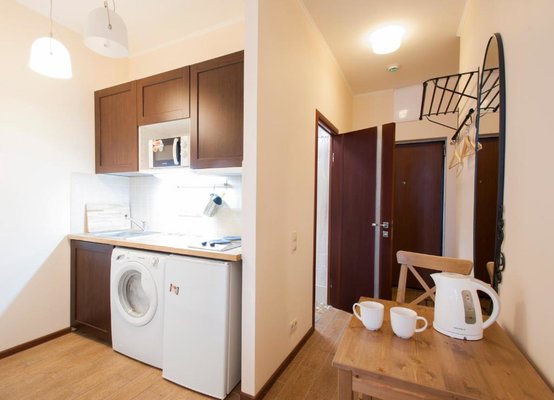 Во всех апартаментах есть полностью оборудованная мини-кухня с микроволновой печью, гостиный уголок, телевизор, стиральная машина и собственная ванная комната с душем и феном. В распоряжении гостей холодильник, плита и чайник. Для гостей апарт-отеля сервируется американский завтрак. В распоряжении гостей терраса.