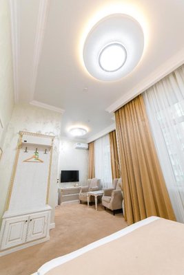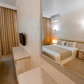 Комфортабельные номера оформлены в строгом классическом стиле с использованием светлой цветовой гаммы. Категории оснащены техникой, мебелью с отделкой из дерева и ванными комнатами. На всей территории предоставляется беспроводной доступ к сети Wi-Fi.